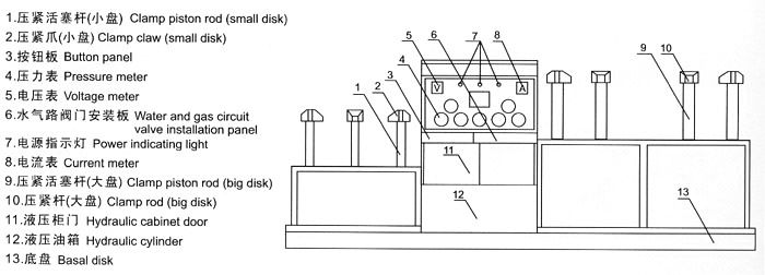 三、接通電源,按油泵啟動按鈕,檢查電機轉(zhuǎn)動方向,是否正確(順時針方向)進(jìn)行5 — 10分鐘空載運轉(zhuǎn)后,調(diào)節(jié)油泵壓力在5 0MPa進(jìn)行試機,各種動作,檢查各管路有無泄漏,發(fā)現(xiàn)不良現(xiàn)象,應(yīng)立即停機排除。