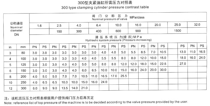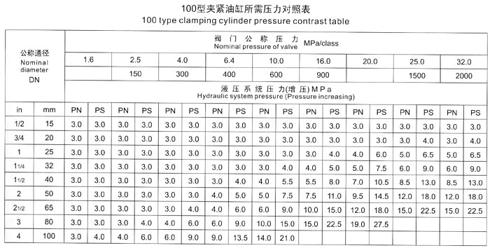 五、測試閥門時,首先根據(jù)被試閥門試驗(yàn)壓力,要求參照《壓緊油缸所需壓力對照表》中液壓壓緊系統(tǒng)壓力值,進(jìn)行增壓壓力調(diào)節(jié),嚴(yán)禁增壓壓力值超高、防止被試閥門變形損壞。