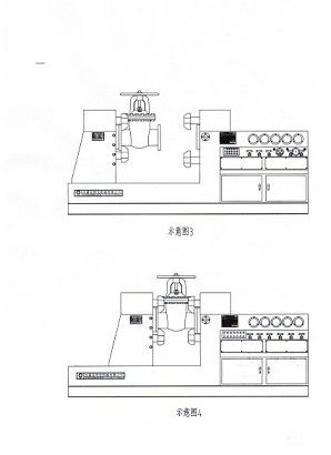 2.主要功能原理:采用閥門(mén)法蘭端面定位,液壓爪抱壓閥門(mén)法蘭背面壓緊密封方法,左右兩向工作臺(tái)上夾爪機(jī)構(gòu)的軸向壓緊與放松及徑向大小進(jìn)退同步工作。右向工作臺(tái)設(shè)置90度翻轉(zhuǎn)功能,左向工作臺(tái)設(shè)為平衡式移動(dòng)架可水平移動(dòng)。各功能傳動(dòng)都由液壓驅(qū)動(dòng)電器按鈕控制, 保壓和泄壓用針型閥手動(dòng)控制。根據(jù)被試閥門(mén)壓力等級(jí)可調(diào)節(jié),最高不能超過(guò)上述(表中)壓力。