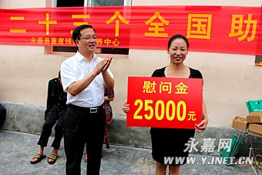今年的 5月19是第23個全國助殘日,永嘉縣委副書記縣長姜景峰率縣殘聯(lián)理事長鄭文杰、縣委農(nóng)辦領(lǐng)導(dǎo)、和浙江優(yōu)機機械科技有限公司總經(jīng)理李珍武等專程到縣重度殘疾人托養(yǎng)中心、東城街道峙口村、長源村慰問。
