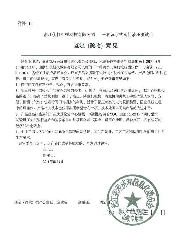省級工業(yè)新產(chǎn)品(新技術(shù))鑒定(驗(yàn)收)證書