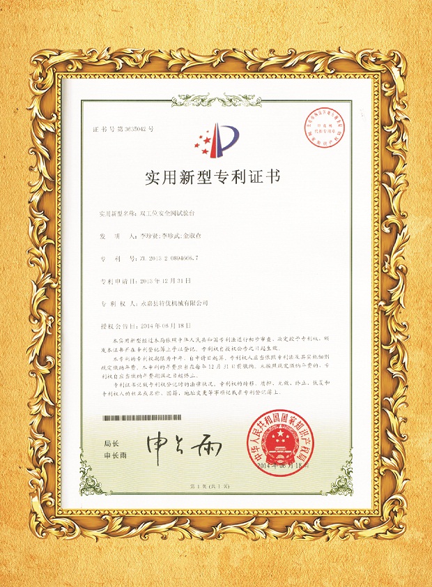 安全閥試驗臺專利證書